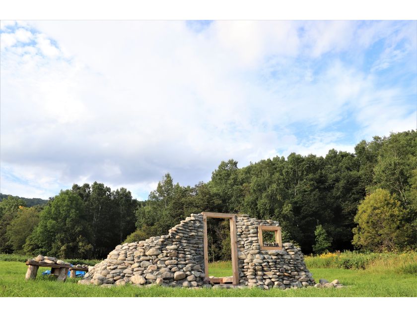 人の手が入っていない、“手付かずの大地を自分達の手で開拓する”という言葉そのものが当てはまるのが、ちびっこ開拓村です。本当に何もない草原を開拓し、木の家、レンガの家、石の家、沢の階段、ちびっこ開拓農園(畑)、石の露天風呂、風力発電、炊事小屋、沢からの水引き…など、「ちびっこ開拓村」という名前そのままの姿が、この場所に広がり、サッカースタジアムの2倍以上の広さがあります。